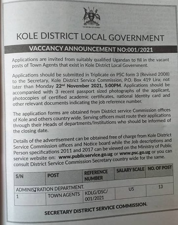 P.O Box 419, Lira , Uganda | Tel: 0782724971, 0772320046| E-mail: info@kole.go.ug